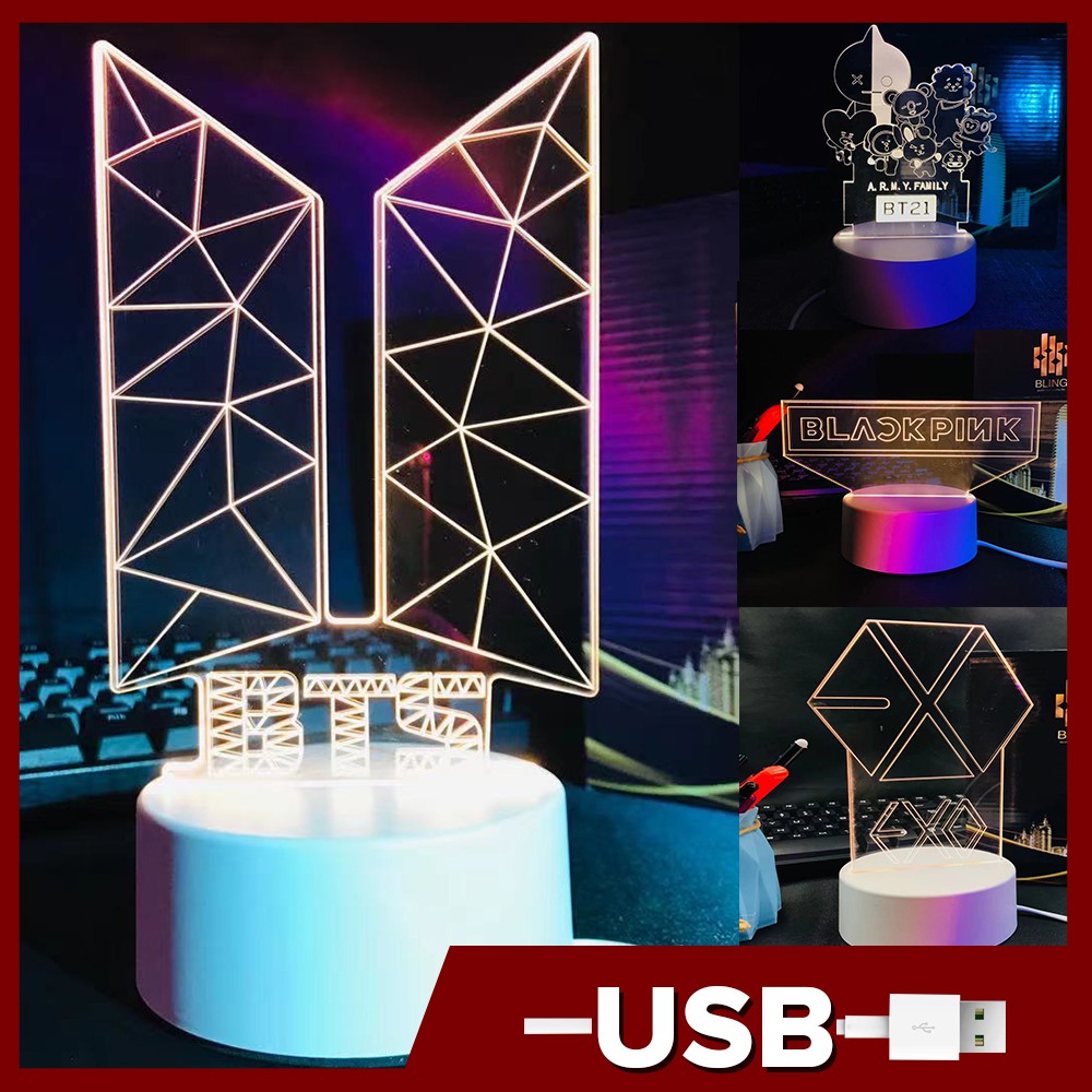 BTS Logo And BlackPink 3D Light Optical Illusion Light